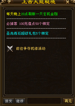 上古大能秘境 20点刷新 掉落 5000充值点 空间切割碎片礼包 圣洗练石超级礼包